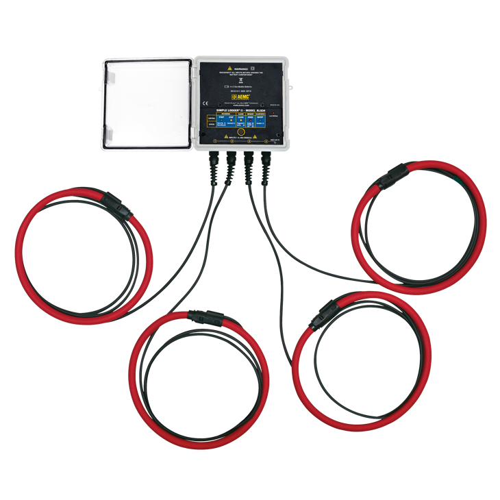 The AL834 Simple Logger® II is a 4-channel AC current data logger with four integral flexible current sensors. Each sensor is 24 inches long and capable of wrapping around an 8 inch conductor.