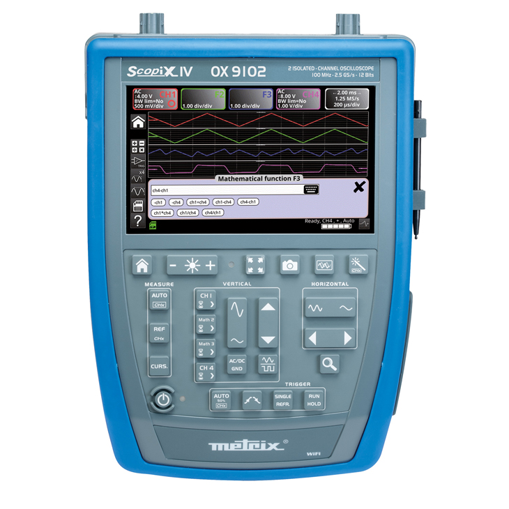 Ideal for both laboratory and field use, the Model OX 9102 utilizes the patented system of “plug-and-play” accessories, individual isolation of each of the measurement channels, and a range of remote management capabilities. The Ethernet link and Wi-Fi lets you remotely control the oscilloscope without loading any software to your PC. Android App available to download from Google play store.