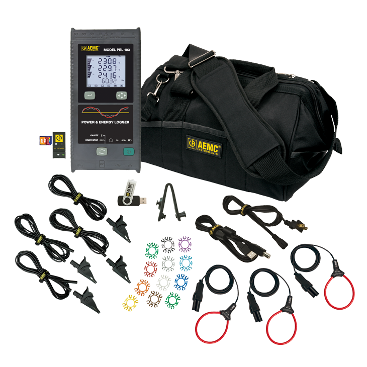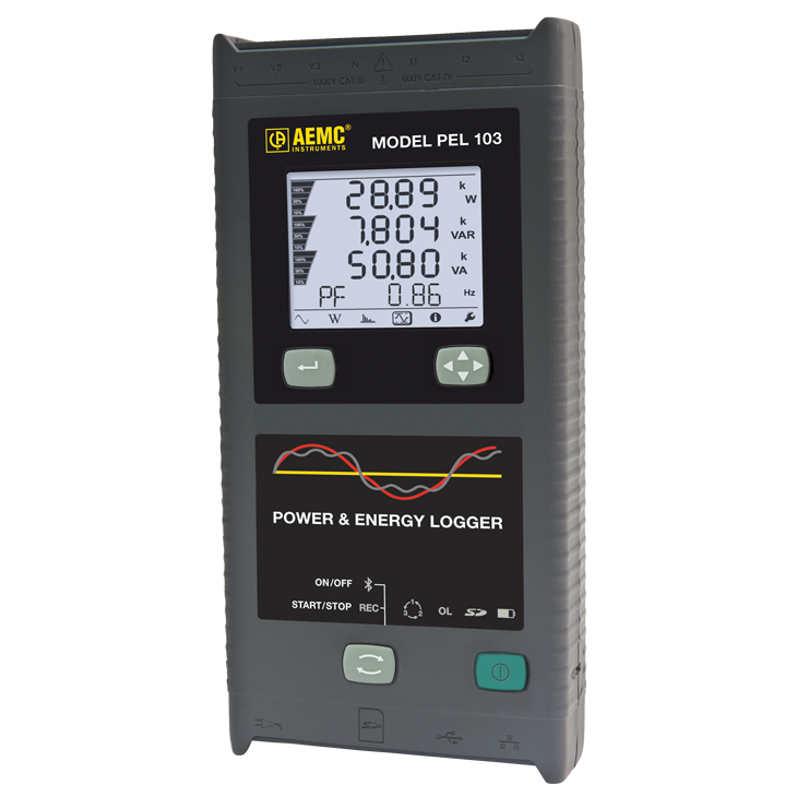 The AEMC PEL 103 Power & Energy Logger is a low cost, simple to use, one, two (split phase) and three phase (Y, Δ) power/energy data logger. This product is ideal for electricians, engineers and contractors doing work in the area of building and system monitoring and upgrades, as well as residential and overall energy audits. All vital energy data is easily measured, recorded, and analyzed. Reports can be generated with confidence with minimal configuration time and effort (Standard and Customizable Reports supplied).