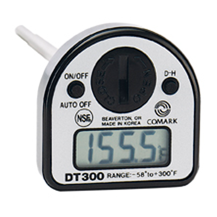 DT300 water resistant digital thermometer has data hold button to freeze a temperature reading making it easier to record.