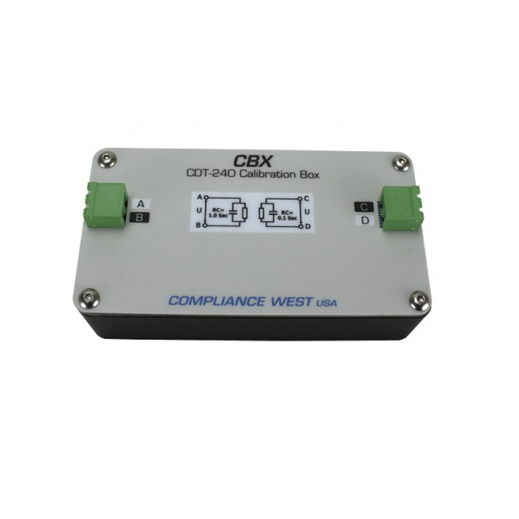 Calibration/Functionality box for CDT-240, used to calibrate and verify the proper function of the CDT-240, provides 2 RC constant outputs, 1s and 0.1s. Comes with leads to connect to CDT-240 front panel. NIST calibration supplied; A2LA calibration available.