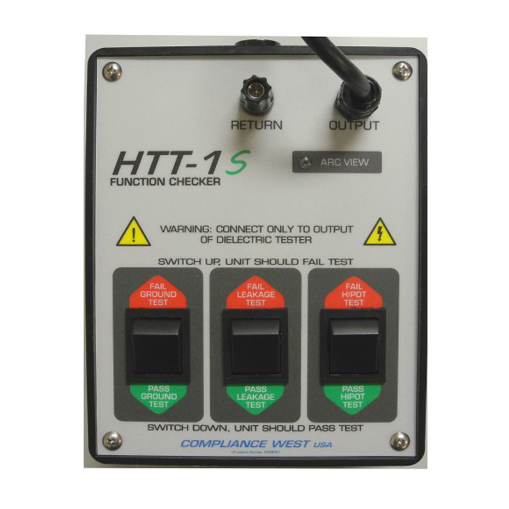 The HTT-1S was designed to provide a fast, safe and reliable way to verify proper operation of Dielectric Withstand (hipot) and Ground Continuity Testers between calibration cycles. It allows the operator to check the result of the three failure modes encountered in production hipot and ground circuit testing (open ground, high leakage current, and dielectric breakdown) separately or in any combination to verify proper test equipment operation. A passing test can also be simulated. The test leads allows connection of the HTT-1S to any hipot tester using a standard NEMA 15A receptacle and banana jacks to allow direct connection to the hipot/ground bond tester(s) using their cables. The manual contains anticipated results and suggests testing procedures. The maximum voltage the HTT-1S can test is 2000Vac/3000Vdc.