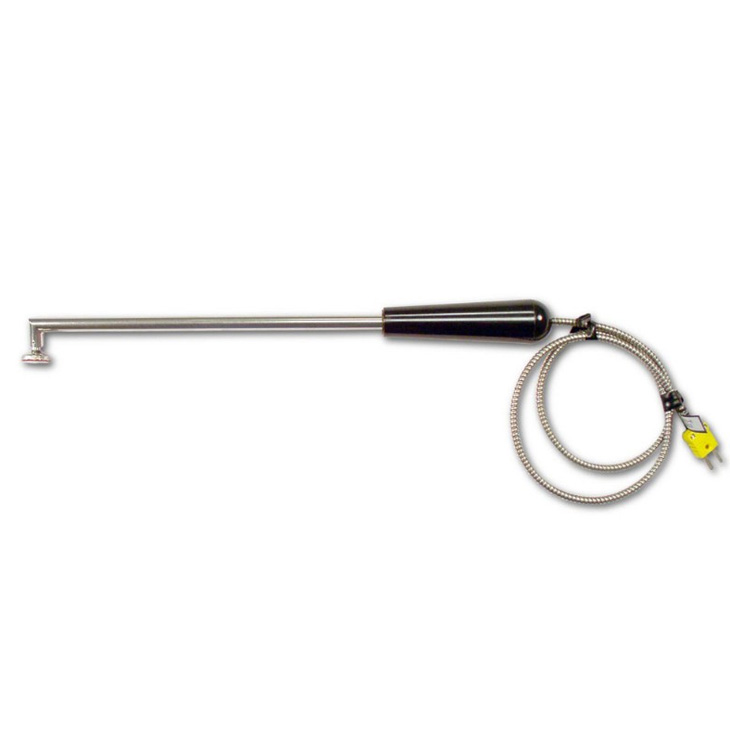 The 50001-K was designed for use on any flat surface. Swiveling bell sensor self-orients to the surface, giving superior contact. Ideal for griddles and platens. Durable Phenolic handle. Cable protected by flexible armored sheath. A dab of oil is recommended to aid in heat transfer between sensor and flat surface. Available in Type J, K, and T.