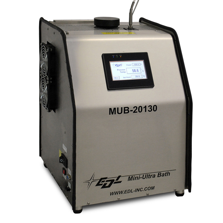 EDL brings accurate stirred liquid bath calibrations to field service and the laboratory bench top with the introduction of this product line. Mini-Ultra Baths are high precision portable calibration source instruments that simply outclass even the best dry wells – at an affordable price. At a fraction of the cost of large floor model style baths, accuracies and uniformities better than 20mK are achieved with this temperature calibration unit. MUBs are ideal for lab and field calibration of thermocouples, SPRTs, thermistors, and liquid in-glass thermometers. Our baths offer a wide operating range at a competitive cost, and there is no question that liquid baths will reduce fit and immersion error. With a uniquely designed deep well, this unit is perfect for almost any immersion style sensor. The EDL MUB-20130 was designed for the temperature range of -20 °C to 130 °C ? allowing testing at 121 °C, a key sterilization temperature. This unit includes an RS-232 interface for use with the supplied i-Tools software. Full function programming, monitoring and graphing from your laptop or PC is available using this open architecture system software.