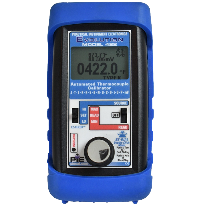 Multiple thermocouple type calibrator. Comes with rubber boot, hands free carrying case, test leads and NIST cert.