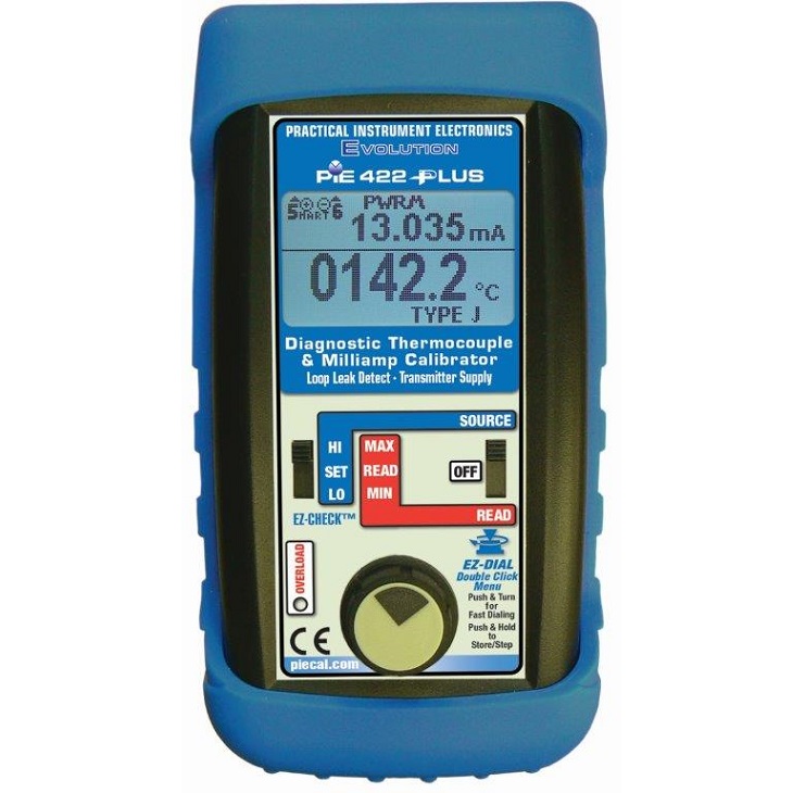 Diagnostic Thermocouple and Milliamp Calibrator with Patented LeakDetect. Comes with rubber boot, hands free carrying case, test leads and NIST cert.