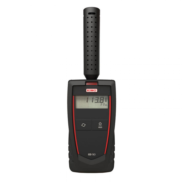 Portable CO-meter with built-in CO/temperature probe (0 to 500 ppm and -20 + 80°C). 1-line display. Functions: CO, temperature, Hold, change of unit, automatic switch-off. Supplied with soft case and adjustment certificate.