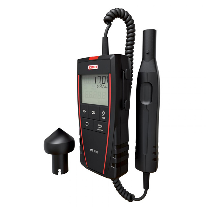 Portable tachometer with optical and contact probe, 2m cable (from 0 to 60 000 RPM and 0 to 3000 m/min). 2-line display. Functions: Hold, Min, Max, backlight, change of unit, configurable automatic switch-off. Supplied with 1 m reflective tape, soft case and calibration certificate.