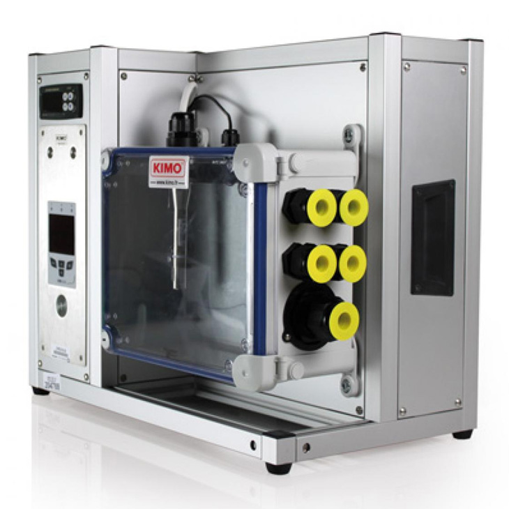 Measuring range from 0 to 100% RH. Generating range from 10 to 85% RH. Simultaneous display of measurement and of hygrometry set point. Configuration via keypad on front face. Ventilated measuring range 225*178*85 mm with four PG16 cable gland and one PG29 cable gland. Power supply 110/240 Vac 50-60 Hz. Dimensions 410*410*242 mm. Supplied in transport case, with 1 bottle of non-mineral water and 1 bottle of silica gel.sport case, with main power supply cable, USB cable, calibration certificate and user manual.