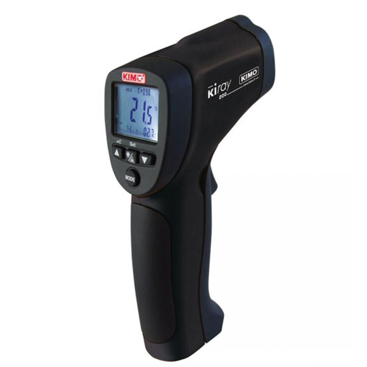 The Kimo KIRAY 200 infrared thermometer with a dual laser sighting is a key instrument to diagnose, inspect and check any temperature, with the advantage of using “no-contact” technology. It has a range from -50 to +850°C. An infrared thermometer measures surface temperatures of hot objects that are dangerous or difficult to access.
