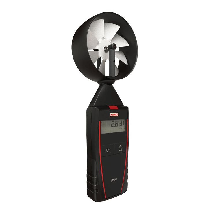 Integrated probe, hold function, automatic shut-off. IP54 ABS housing. Ø100 mm vane probe.