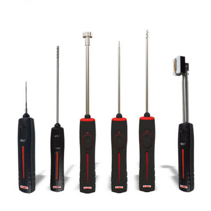 SAPS 150: PT 100 ambient type probe (-40 to +250°C). Stainless steel perforated probe Ø 4.5 mm, length 150 mm, with handle, integrated mini-din connector, Smart-2014 recognition system. Supplied with adjustment certificate. For Class 210 and 310 instruments (Tr 99% : 115 sec)