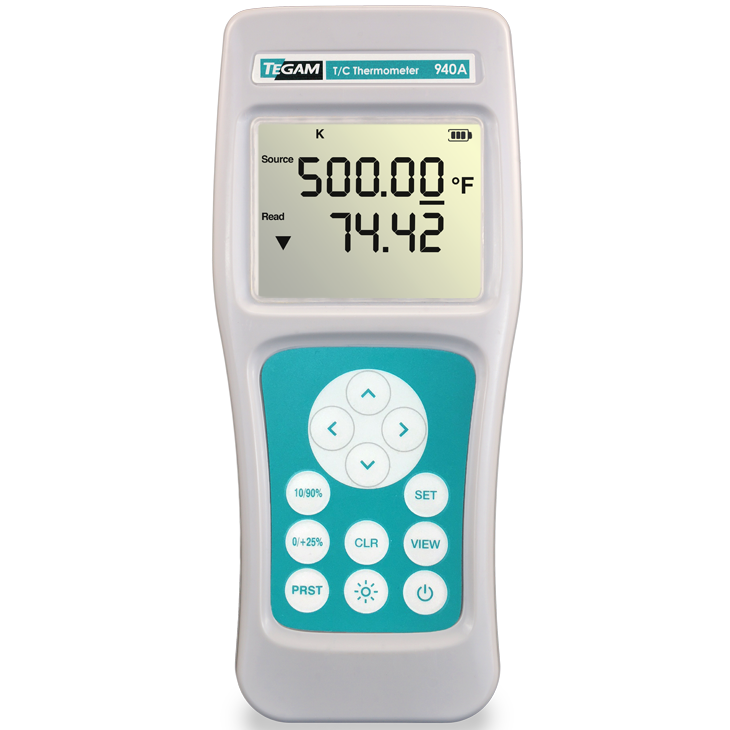 The 940A Thermocouple Calibrator provides laboratory-grade temperature calibrations in a highly portable package that goes to the work site with ease. Industries that measure temperature are being pushed to achieve better results for both quality and product safety. TEGAM has responded by designing an instrument that leads its class in terms of accuracy, battery life, convenience and ease of use.
